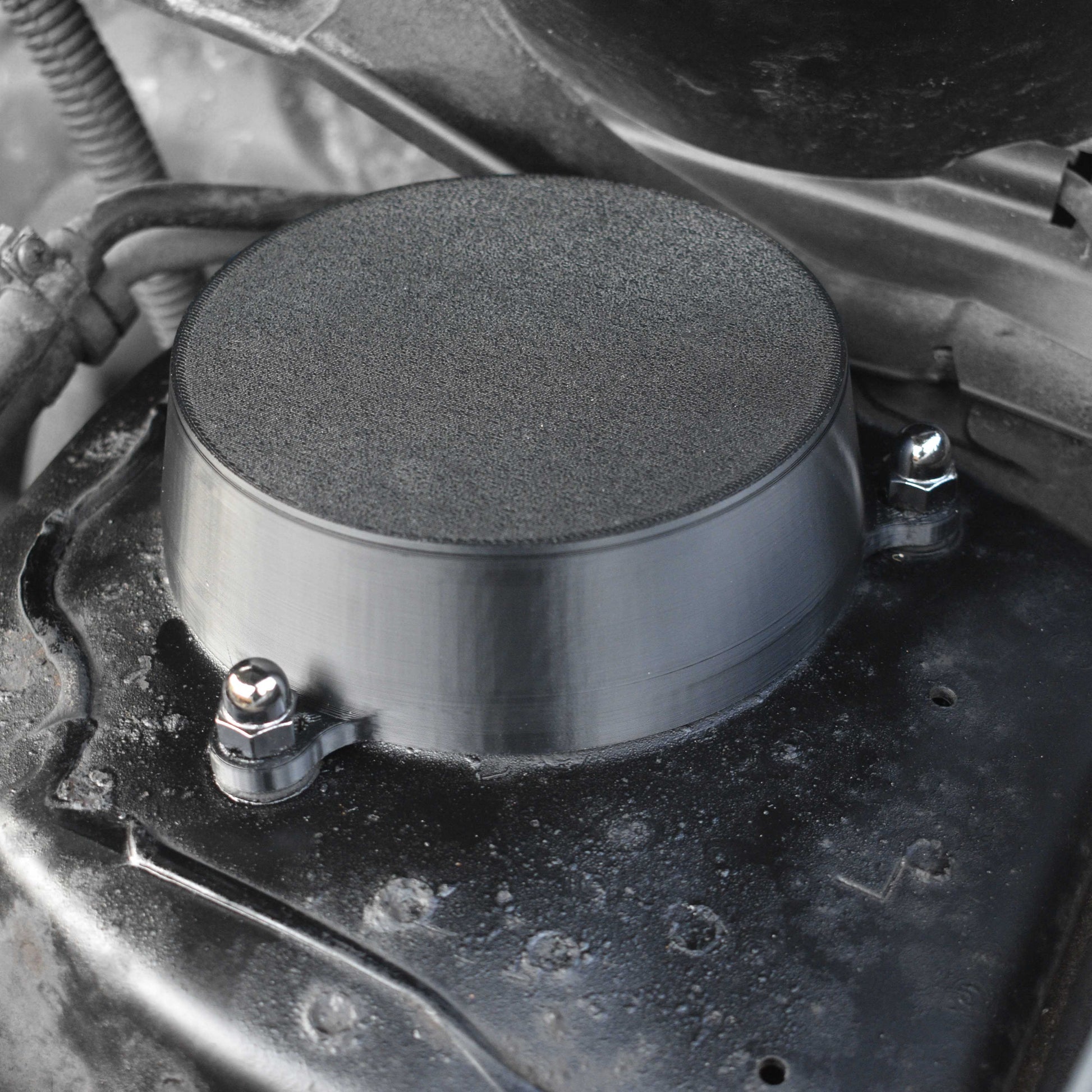 Note: These covers must be installed OVER the existing strut tower nuts. Do not remove the strut tower nuts and fit the cover directly to the car's body.