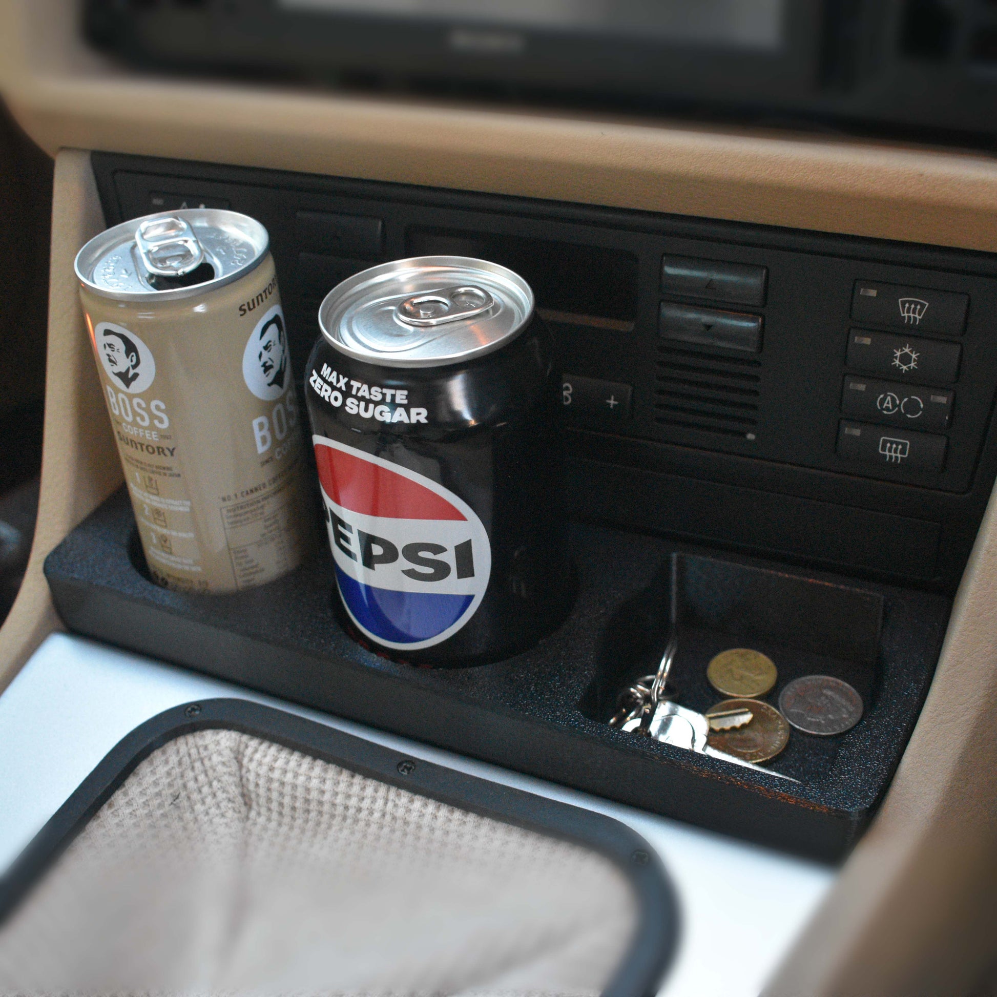 If you own an E39, chances are your cupholder is either broken or you don’t like it very much. The factory cupholder doesn’t give much confidence due to its thin and flimsy design, and it tends to grip regular cans more tightly than usual, which causes it to flex when removing them and is one of the reasons it’s prone to breaking.